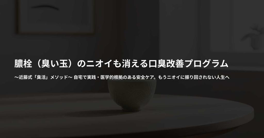 これは、口臭の根本改善型プログラムです。高額な口臭対策グッズや一時しのぎのケアでは満足できない方におすすめします。